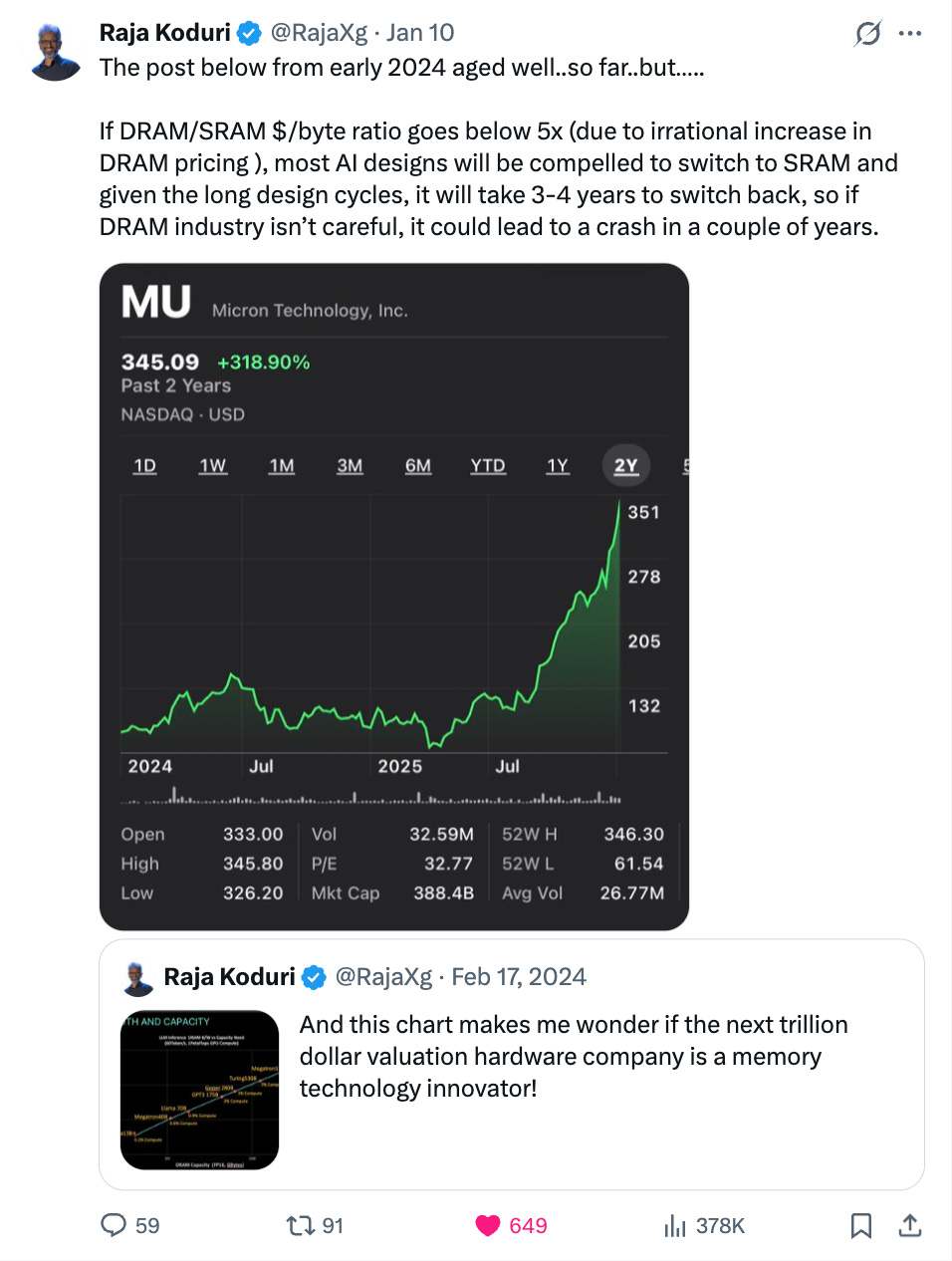 The “but” suggests Raja expects something to change. Either memory pricing corrects, new capacity arrives faster than expected, or some technological shift alters the economics.