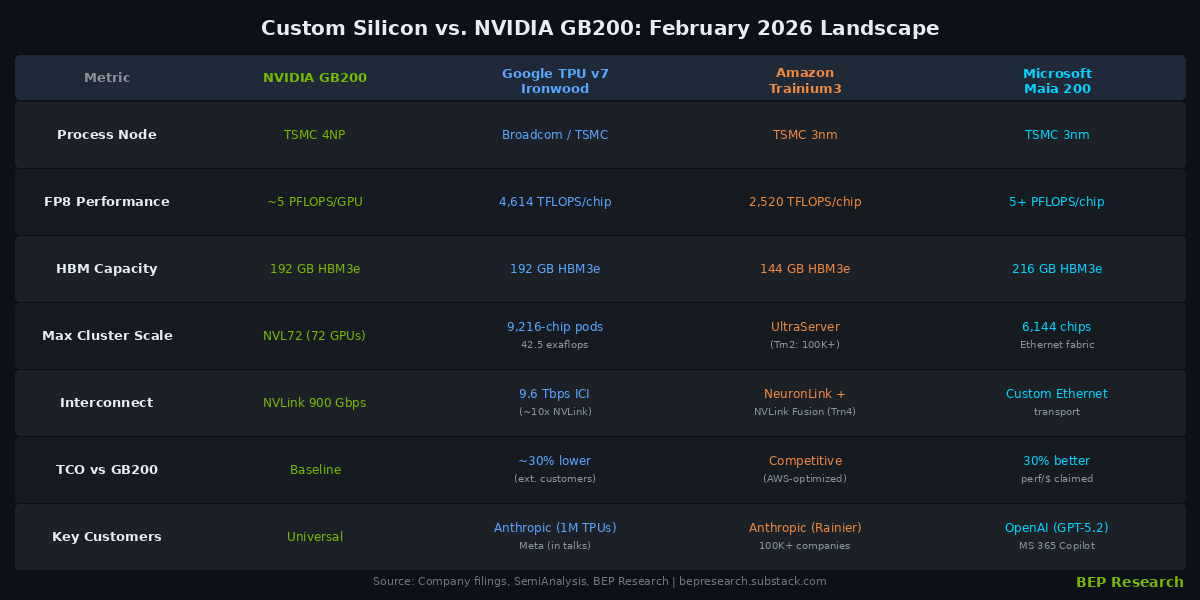 Not Amazon. They’re juggling Trainium3, Trainium4, and a $10 billion custom chip business growing triple digits. Not Google. They just shipped TPU v7 Ironwood and signed Anthropic to a million-chip deal worth tens of billions. Not Microsoft. Azure is deploying Maia 200 for inference while managing the OpenAI relationship and a million enterprise customers.