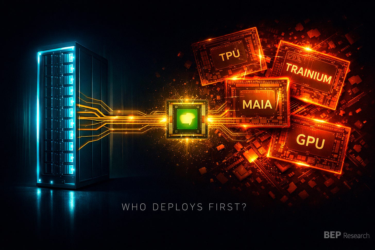 When NVIDIA announces a new architecture (Blackwell last year, Rubin this year), there’s a finite number of systems available in the first 6-12 months. The cloud providers that deploy fastest get the first customers, lock in the highest-margin contracts, and build operational expertise that compounds with each generation. Google Cloud will be among the first to offer NVIDIA’s Vera Rubin platform, but Google’s primary capital allocation is flowing to its own Ironwood TPUs. Amazon just announced Trainium4 with NVLink Fusion support. They’re actively building hybrid NVIDIA/Trainium clusters rather than going all-in on NVIDIA racks. Microsoft’s Maia 200 is already deployed and running GPT-5.2.